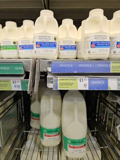 영국의 물가는 높은 것으로 원래 유명하다. 그래도 체감하는 장바구니 물가는 낮다는 이야기도 있었다. 우유, 소고기 등 낙농 제품이나 감자, 당근 등 채소류 같이 식탁 위에 오르는 음식 재료의 가격은 싼 편이었기 때문이다. 우유 가격만 살펴보면, 한국 쿠팡에서 파는 2.3리터(영국 우유 4파인트 용량과 비슷한) 서울우유의 가격은 6280원이다. 한국 이마트몰에서 팔리는 노브랜드 우유 900ml의 가격은 2260원으로, 아직은 영국의 우유 가격이 저렴하다.