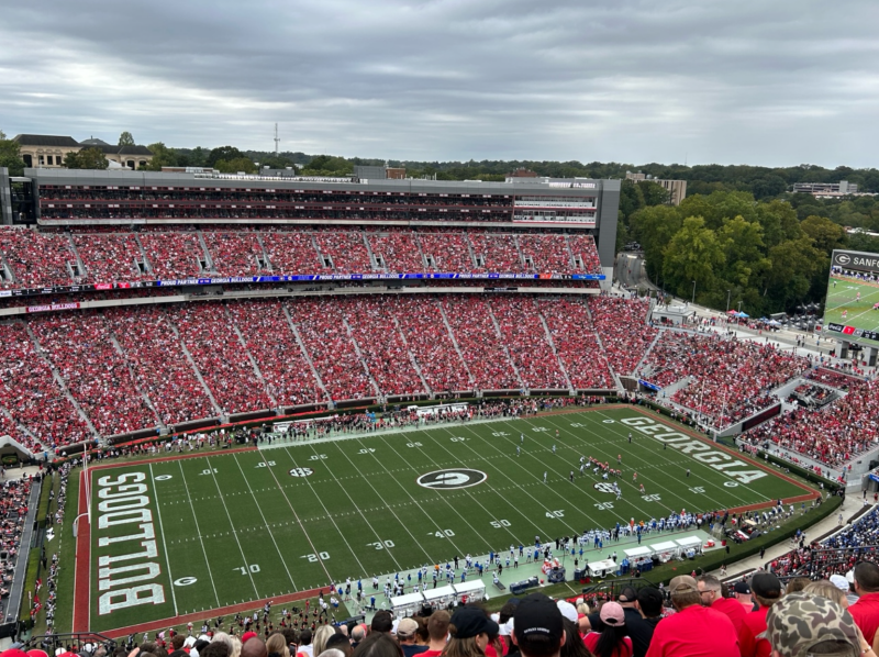 조지아대가 자리잡은 애선스-클라크 카운티(Athens-Clarke County)는 조지아주의 159개 카운티 가운데 가장 면적이 작고, 인구도 12만 8,000명밖에 되지 않습니다. 그러나 남한 땅보다 넓은 조지아주 저쪽 끝에 사는 풋볼 팬들도 수시간 운전을 마다하지 않고 이 작은 카운티로 모여듭니다. 9만 3,000명을 수용할 수 있는 풋볼 경기장, 샌포드 스타디움(Sanford Stadium)이 조지아대 캠퍼스에 있기 때문입니다.